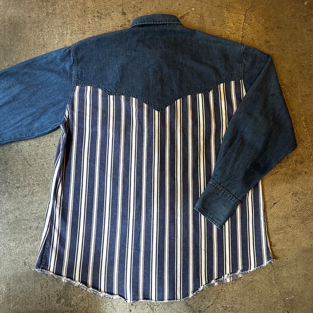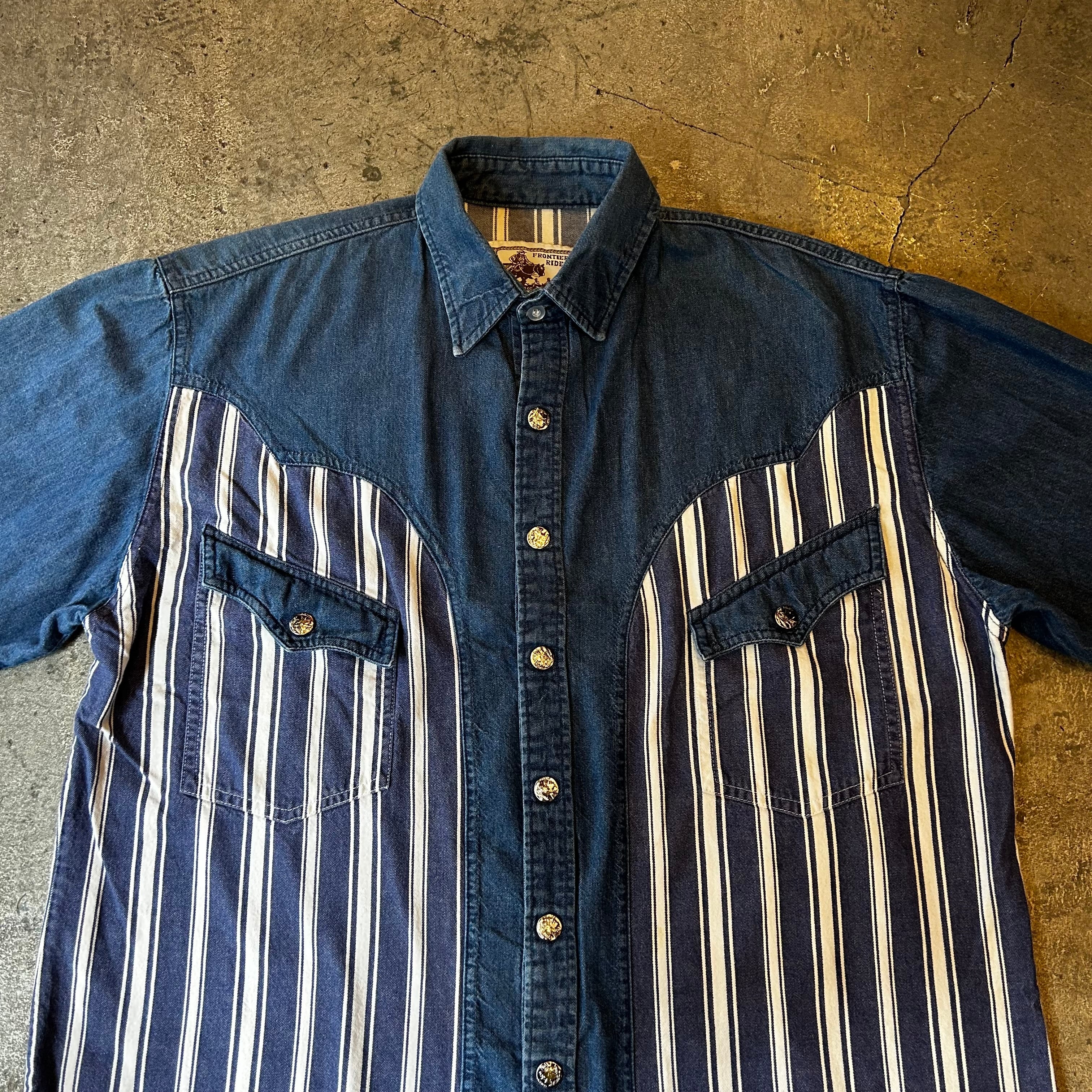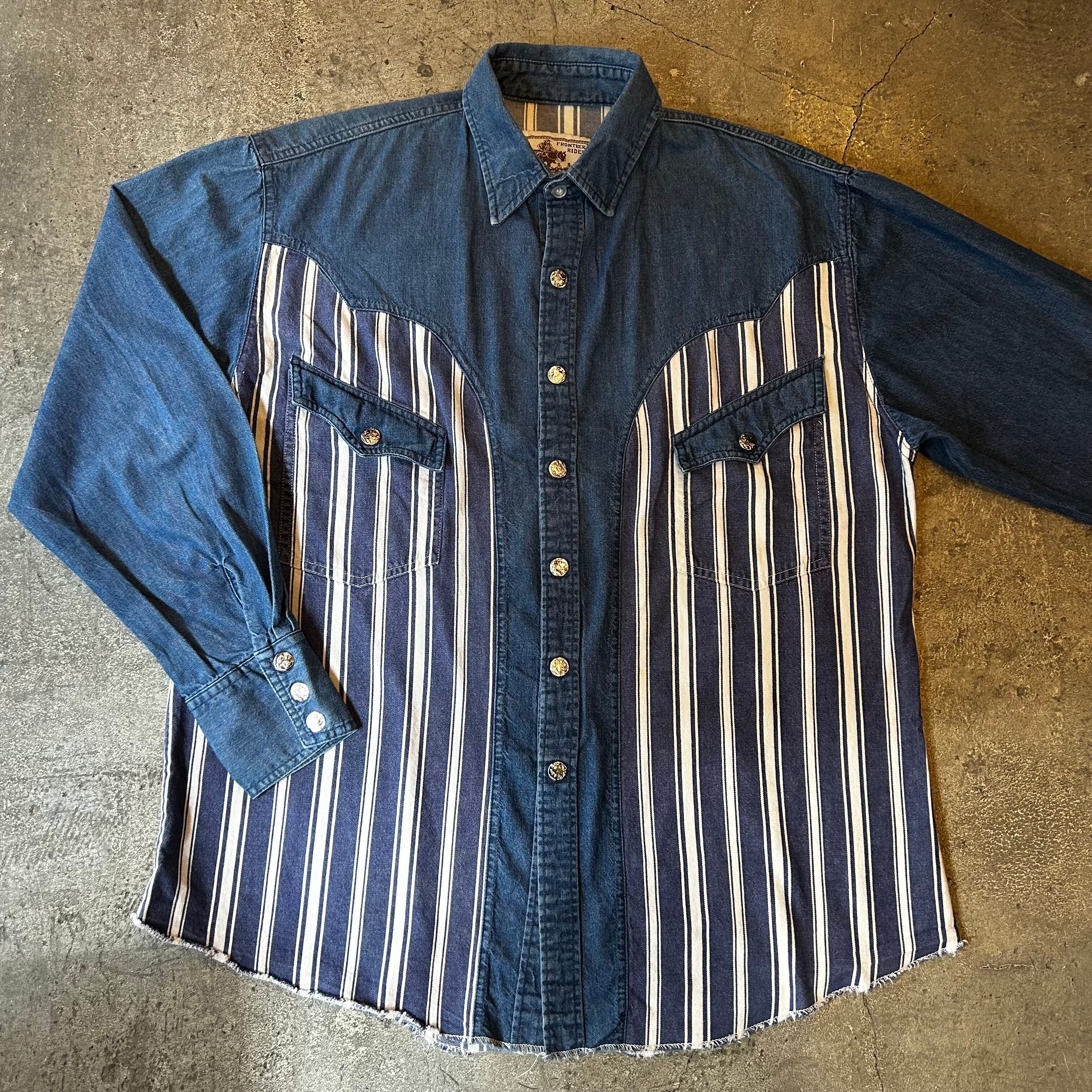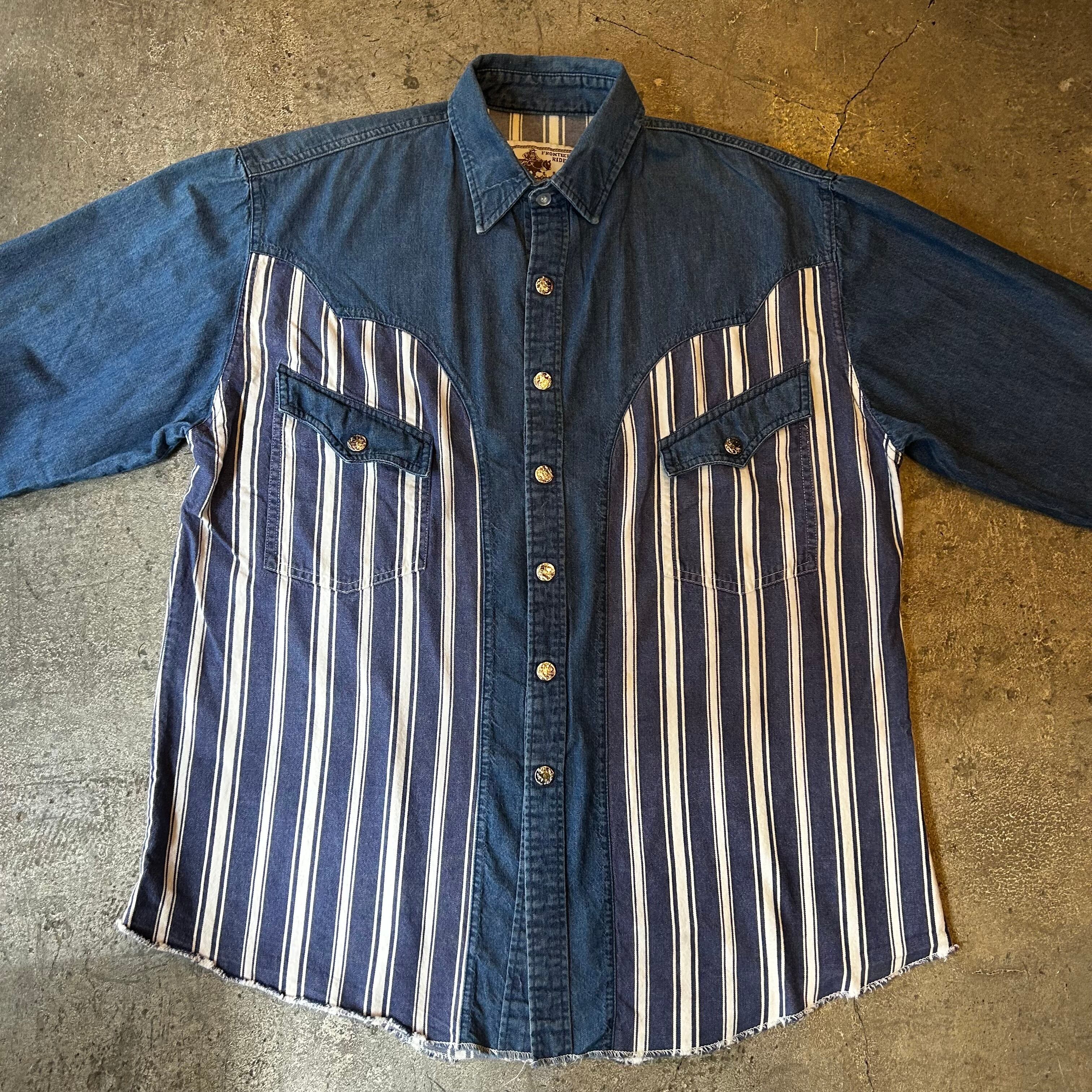 80's 〜、ストライプ切り替えが目を引くデニム・ウエスタン・シャツです!